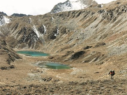這條走海子看貢嘎的線路需要兩天一夜,第一天,從康定市貢嘎山鄉(xiāng)木居村出發(fā)到達(dá)木居海,路程大概六小時(shí),達(dá)到后在海子邊露營(yíng)一晚,期間有可能看見(jiàn)日照金山的美景。第二天,從木居海出發(fā),沿著大山脊到達(dá)尼瑪達(dá)瓦湖,大概兩個(gè)小時(shí)的行程,可以在這里路餐,稍作休息,繼續(xù)沿著大山脊走,差不多兩小時(shí)就到達(dá)達(dá)瓦伽馬湖,繼續(xù)向南,到達(dá)一個(gè)如心型的無(wú)名湖泊,再沿著山溝一直向下,走到玉龍西鄉(xiāng)村公路,整個(gè)行程結(jié)束。