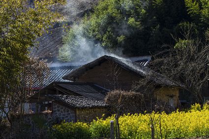在丹巴,藏寨里滿樹的梨花被春風(fēng)喚醒,雪白的花朵綴滿枝頭;在瀘定,油菜花盛放,翠綠搭配金黃,輕快明亮。