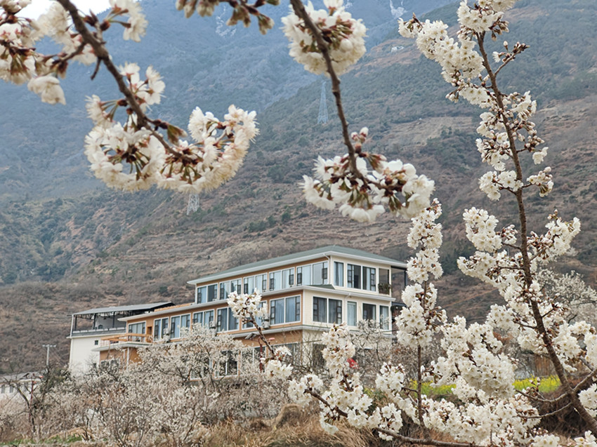 不同于油菜花的燦爛,瀘定縣冷磧鎮(zhèn)千畝櫻桃花,堆雪疊紗、滿山漫白,為整個(gè)山谷的金黃璀璨增添了一道恬謐的寧?kù)o。