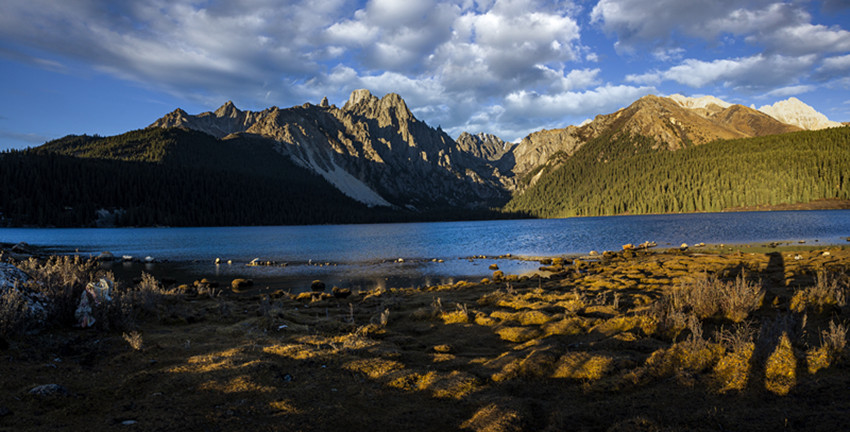 當(dāng)秋風(fēng)輕輕吹過巴塘的時候,無論雪山,還是湖水,還有那藍(lán)天白云,都有了一種高遠(yuǎn)而空曠的美。那高聳入云的雪峰,或是田間地頭的金色,總有一抹明亮的色彩,令你喜歡。我喜歡雪山的巍峨壯麗,也喜歡高山流水的潺潺,更喜歡亞莫措根的彩云。