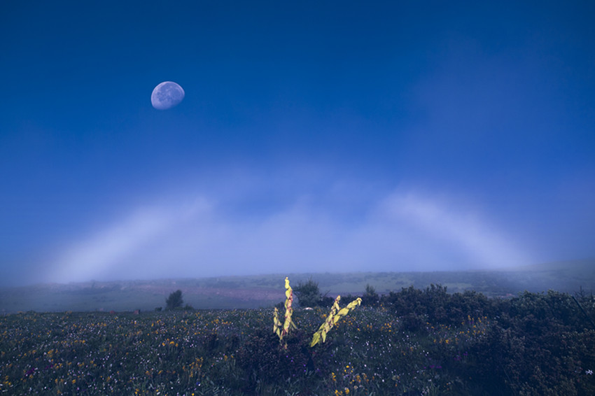 月亮在夜空掛著,給雨后清爽的熱梯濕地和重疊的遠(yuǎn)山,鍍上了一層濕潤的銀白。