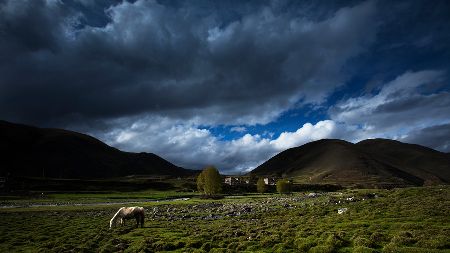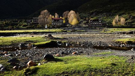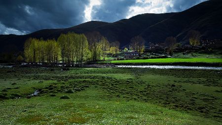 湛藍(lán)的天空下,雄鷹在盤旋,牛羊在安詳?shù)芈匠圆荩o靜的小河在山邊蜿蜒流淌,充滿綠意的白楊樹在風(fēng)中搖曳,藏式民居不時(shí)升起縷縷炊煙,寂靜、空曠的原野深處偶爾會傳來幾聲狗叫高原的陽光又賦予這幅風(fēng)景畫凝重的色彩這樣的畫面叫人心醉,讓人留戀忘返從折多山腳下至新都橋鎮(zhèn),再至塔公草原,處處都是入畫的美景,不愧稱為“攝影家的天堂”。