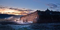 石經(jīng)城位于距石渠縣城呢呷鎮(zhèn)東北約90公里處的阿日扎鄉(xiāng)境內(nèi),坐落在雅礱江支流洛曲河西岸一處兩山相望的草原間,背靠一座平緩、渾圓的山丘,前面是一望無(wú)際的草原,由于草原極為遼闊,遠(yuǎn)遠(yuǎn)望去,整座城并不顯得特別雄偉、壯觀,但走近細(xì)看,這座用一塊塊刻滿(mǎn)經(jīng)文和佛像的石片、石塊在漫長(zhǎng)歲月中逐漸壘砌起來(lái)的石城,所蘊(yùn)含的厚重與蒼茫,堅(jiān)韌與神秘,讓我想起荷爾德林所說(shuō)的“那些四處飄游的分散的力量,都匯聚在一個(gè)黃金般的中心”。