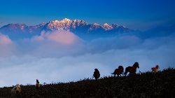 地處瀘定、天全、榮經三縣交界的二郎山紅巖頂是與牛背山天然觀景臺隔山相望的又一處云海奇觀觀景臺。這里與牛背山、貢嘎山成崎角遙遙相視;松柏林立、杜鵑滿坡、駿馬閑遛,草甸翠綠;移步亦景,美景誘人,讓人留連忘返,心曠神怡…………
