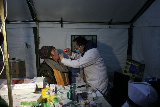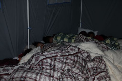 處于震中的塔公鄉(xiāng)祖慶小學(xué)在康定6.3級地震中受損嚴(yán)重,學(xué)校師生搬進(jìn)了救災(zāi)帳篷。地震后,校長德吉擁忠一直忙于安頓孩子們,自己病了也沒時間去衛(wèi)生所,導(dǎo)致眼圈紅腫,聲音嘶啞。23日晚十一時,帶病校長拿著一支不太亮的手電到孩子們的帳篷去查夜。記者用鏡頭記錄下這一過程。