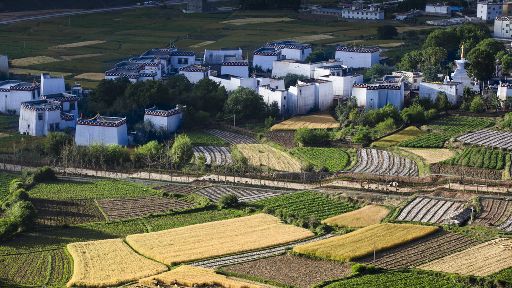 清晨,瓦藍(lán)瓦藍(lán)的天空云霧繚繞,周圍的景物一片朦朧,就好像童話里的仙境,一會兒,太陽從東邊冉冉升起,霧也漸漸消失,村子里屋頂上飄著裊裊煨桑的煙子,我站在山岡上從高處向下俯望,只見高山峽谷之中,層層翠綠的梯田簇?fù)碇l(xiāng)城特有的白藏房,山下的田野,就像一片金色的海洋,將秀麗的田園裝扮得更加如詩如畫。一陣晨風(fēng)吹過,麥田上蕩起了一道道金色的波紋,遠(yuǎn)處傳來了畫眉鳥的歌聲,我被眼前的一切迷住了,仿佛一切都靜止了,她讓我的夢從這里開始。