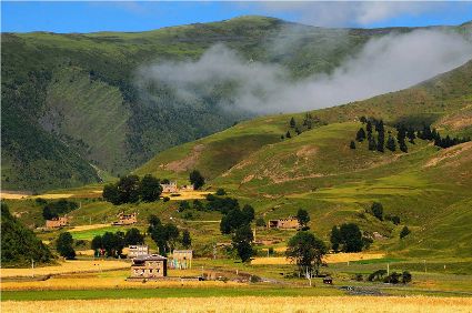 在金秋季節(jié),當嬌滴滴的“水月江南”還在苦苦盼望燥熱早日離去時,而明媚的秋色已經(jīng)在粗獷豪邁的甘孜大地上揮毫潑墨。