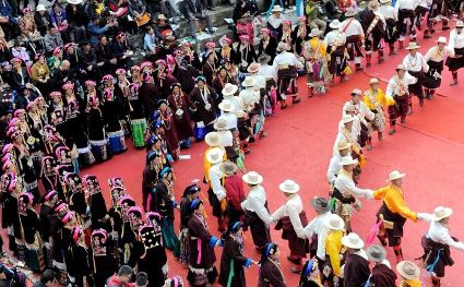10月26日,2017中國(guó)四川丹巴嘉絨藏族鄉(xiāng)村風(fēng)情節(jié)在巴底鎮(zhèn)開(kāi)幕。本次風(fēng)情節(jié)集古碉藏寨、嘉絨選美、大型鍋莊、民族歌舞、精美服飾、農(nóng)耕體驗(yàn)以及田園觀光等為一體,既是一場(chǎng)風(fēng)情別致的民族文化盛會(huì),也是一場(chǎng)如詩(shī)如畫(huà)的鄉(xiāng)村旅游大餐。30名巴底片區(qū)(聶呷鄉(xiāng)、巴旺鄉(xiāng)、巴底鎮(zhèn))的姑娘們經(jīng)過(guò)形體和才藝展示兩個(gè)環(huán)節(jié),最后評(píng)選出金花1名,銀花2名,石榴花3名。本次活動(dòng)評(píng)選標(biāo)準(zhǔn)總分為10分,29號(hào)選手莫莫以9.85分的優(yōu)異成績(jī)榮獲本次風(fēng)情節(jié)“金花”稱號(hào),10號(hào)選手卓瑪和6號(hào)選手孟江榮獲“銀花”稱號(hào),28號(hào)選手扎西瑪初、16號(hào)選手仁千以及11號(hào)選手德江初榮獲“石榴花”稱號(hào)。 丹巴嘉絨藏族風(fēng)情節(jié)歷史悠久,至少可以追溯到唐宋時(shí)期,最早是人們?yōu)榱藨c祝豐收舉行的慶?;顒?dòng),每當(dāng)夏收或秋收之后的農(nóng)閑期間,人們各自帶著釀制的新酒,聚集在一起,一邊品嘗美酒,一邊跳起鍋莊,盡情歡度豐收之后的閑暇時(shí)光,祛除一年的疲勞辛苦,久而久之便形成一種習(xí)俗沿襲下來(lái),活動(dòng)的規(guī)模越來(lái)越大,內(nèi)容也越來(lái)越豐富?;顒?dòng)內(nèi)容主要包括:品嘗美酒、鍋莊舞蹈演賽、山歌情歌對(duì)唱、評(píng)選美女、民間雜耍等活動(dòng)。據(jù)了解,2017丹巴嘉絨藏族鄉(xiāng)村風(fēng)情節(jié)將持續(xù)至28日,還將在東谷鄉(xiāng)、革什扎鄉(xiāng)、梭坡鄉(xiāng)開(kāi)展一系列豐富多彩、獨(dú)具特色的民俗表演活動(dòng)。