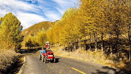 光影如此柔和,秋色如此美麗。夏去秋來,綠草不再成為主調(diào)。紅色、褐色和黃色充斥在眼底,五彩斑斕盡顯秋色,就像油畫一樣美輪美奐。再加上碧綠清澈的河流,彎彎曲曲,流淌走過四季,和著暖陽牛馬悠閑懶散的身影,自然天成的美景令人心曠神怡、如醉如癡……