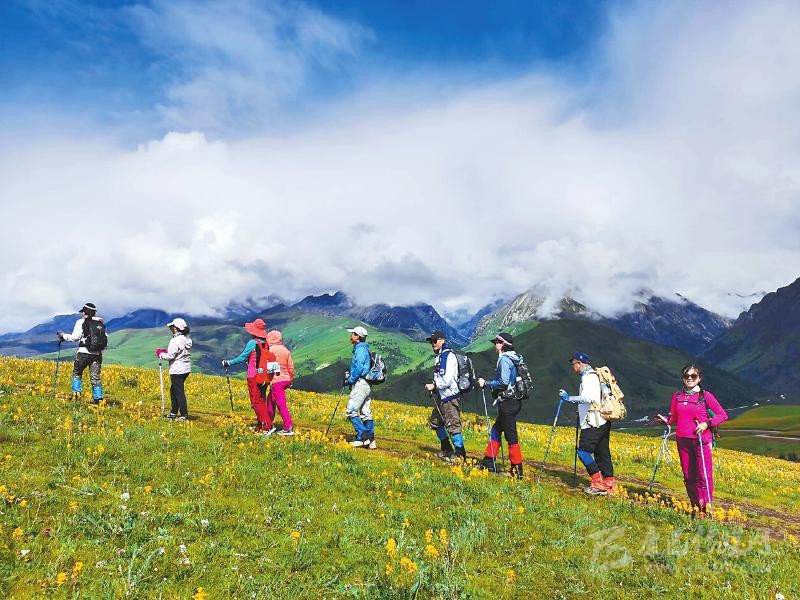 本網(wǎng)訊 8月2日,來自全國(guó)各地的游客在理塘縣格聶景區(qū),徒步體驗(yàn)格聶神山秘境之旅。