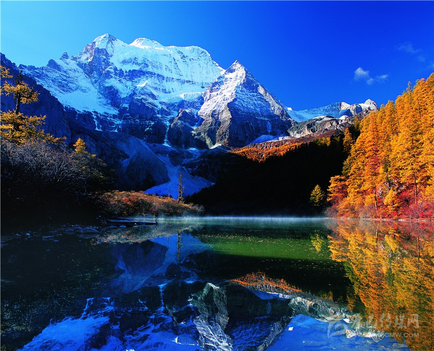 藏語意為:“文殊菩薩”,為“三怙主”雪山的南峰,海拔高度為5958米,在佛教中排在“三怙主”雪山之首。文殊菩薩在佛教中是智慧的化身,雪峰像菩薩師利用手中的智慧之語直指蒼穹,冰晶玉潔的央邁勇傲然于天地之間。一九二八年,洛克先生在云南與稻城毗鄰的群山重嶺中,遙望見了央邁勇,被她圣潔,高貴的氣質折服,在他的日記中寫到“她(央邁勇)是我見到世界上最美的山峰?!?/p>