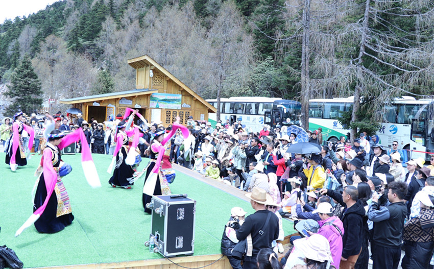 木格措景區(qū)載歌載舞迎游客。