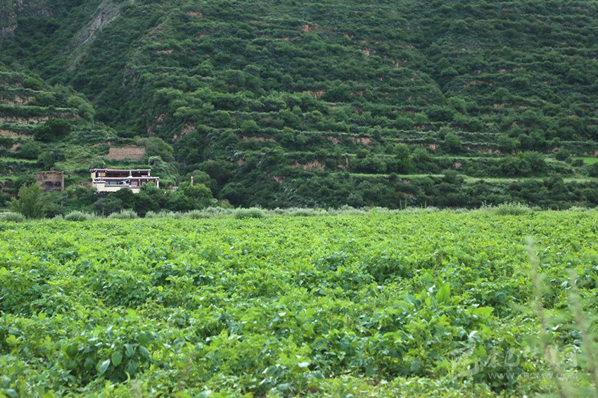 顯然,這也是我第一次涉足的“新路”。道路臨崖一側(cè)群開的格桑花,似給這條拋物線形的小路鑲嵌了一道繽紛絢麗的花邊。