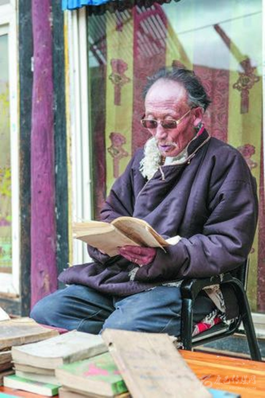 余音繞梁、鳴金收兵,天造地合的佳話叫人回味無窮。面對(duì)還沉浸在烽火邊關(guān)與兒女情長(zhǎng)中的老人,真有一種不忍打擾的感動(dòng)。幾十本從八十年代到二十一世紀(jì)由西藏、甘肅、青海、四川等民族出版社出版的各種藏文《格薩爾王傳》書籍,雖然有的邊角磨損嚴(yán)重,有的封面封底用塑料薄膜一針一線串起,卻沒有一本掉頁(yè),更不要說有污漬灰塵了,揣摩著那一本本厚薄不一的書籍,如數(shù)家珍般逐一介紹書中的內(nèi)容,就算間隔30多年都還記得買書時(shí)的場(chǎng)景,足見老人對(duì)它的情有獨(dú)鐘。