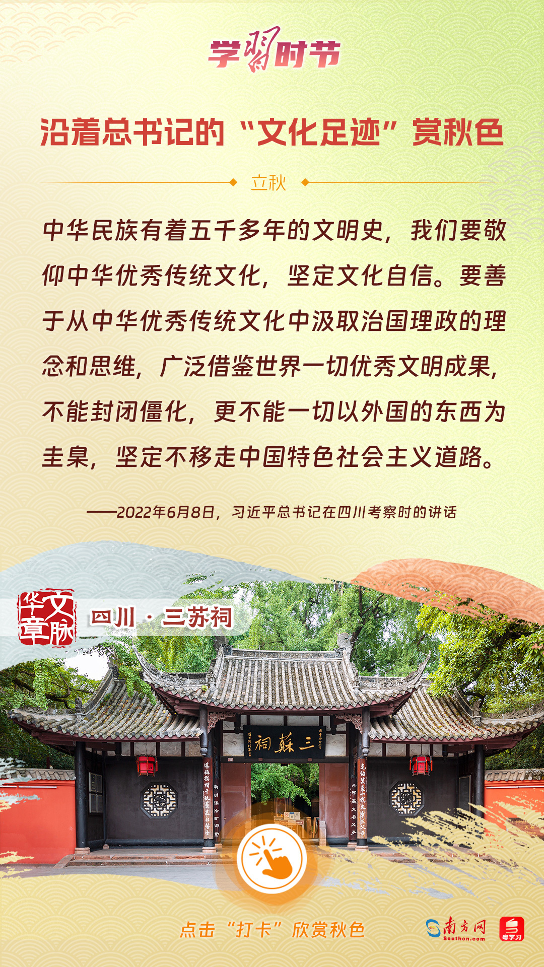 立秋之際,讓我們一起跟隨習近平總書記的足跡,學習習近平總書記關于文化建設的重要論述,感受全國各地文化地標古跡的秋意,汲取文化自信的強大力量。