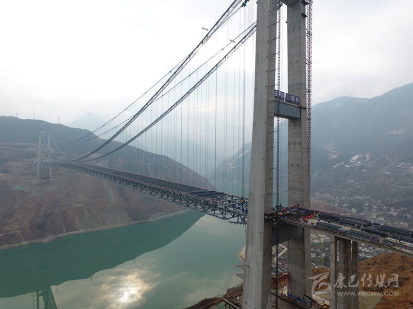 “大橋鋼桁梁完成合龍,標(biāo)志著大橋全面進(jìn)入橋面施工階段,也標(biāo)志著這座建設(shè)在高海拔、高地震烈度帶、復(fù)雜風(fēng)場(chǎng)環(huán)境下的超大跨徑鋼桁梁懸索橋,施工中最難、風(fēng)險(xiǎn)最大的施工全面完工?!毖趴蹈咚夙?xiàng)目部副經(jīng)理柏國(guó)勝激動(dòng)地說(shuō)。