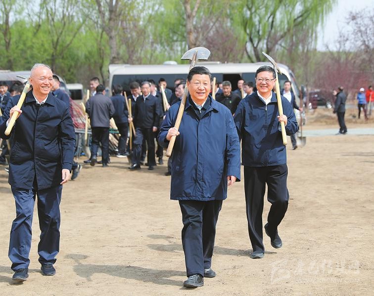 春染大地,生機(jī)勃發(fā)。上午10時30分許,黨和國家領(lǐng)導(dǎo)人習(xí)近平、栗戰(zhàn)書、汪洋、王滬寧、趙樂際、韓正、王岐山等集體乘車,來到北京市通州區(qū)永順鎮(zhèn),同首都群眾一起參加義務(wù)植樹活動。