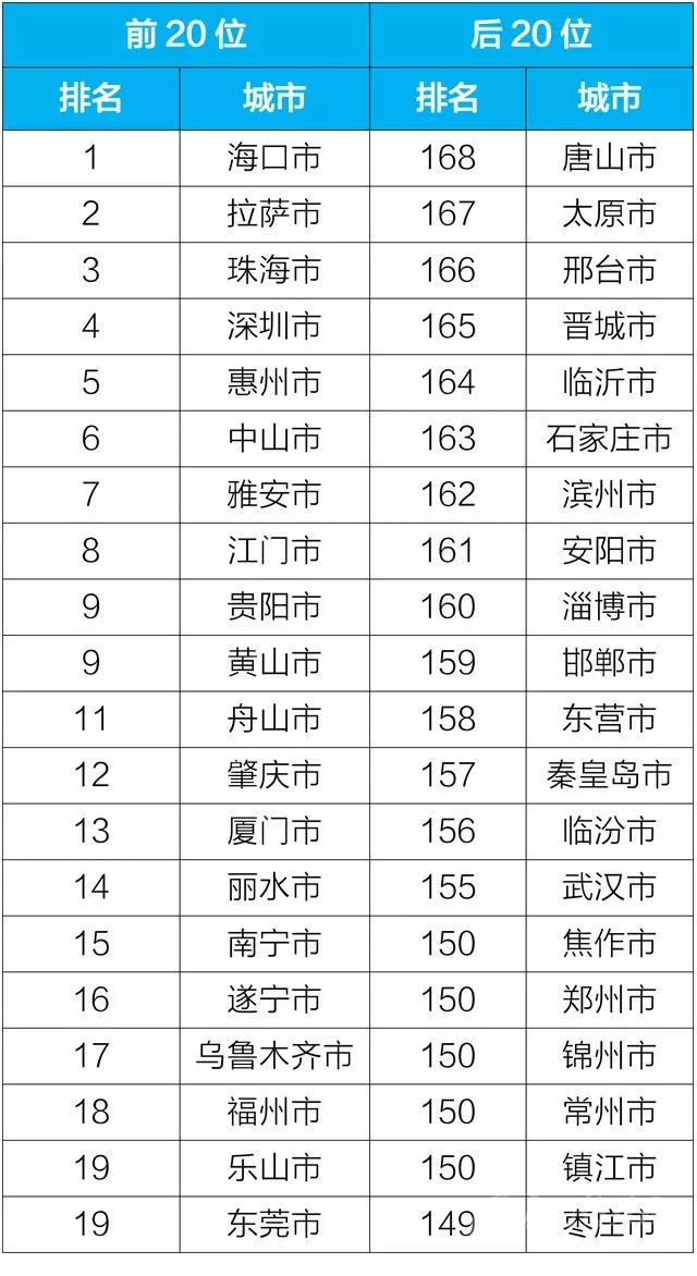 通報(bào)顯示,2019年5月,168個(gè)重點(diǎn)城市中唐山、太原、邢臺(tái)市等20個(gè)城市空氣質(zhì)量相對(duì)較差(從第168名到第149名),無四川城市;2019年1-5月,168個(gè)重點(diǎn)城市中臨汾、石家莊、邢臺(tái)市等21個(gè)城市空氣質(zhì)量相對(duì)較差(從第168名到并列第148名),無四川城市。