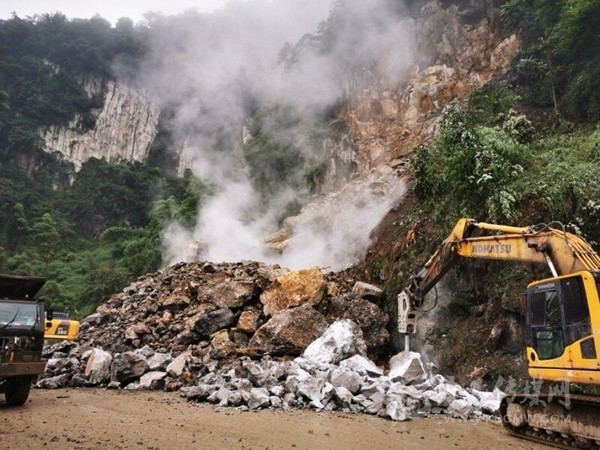 周宗海說,為搶通中斷路段,珙縣自然資源和規(guī)劃局于18日中午一點開始,組織機具10余臺 ,人員20余人進行連續(xù)加班作業(yè),對垮塌巖體進行爆破、清運,清理碎石約15000噸,于19日晚上十點搶通了該路段。