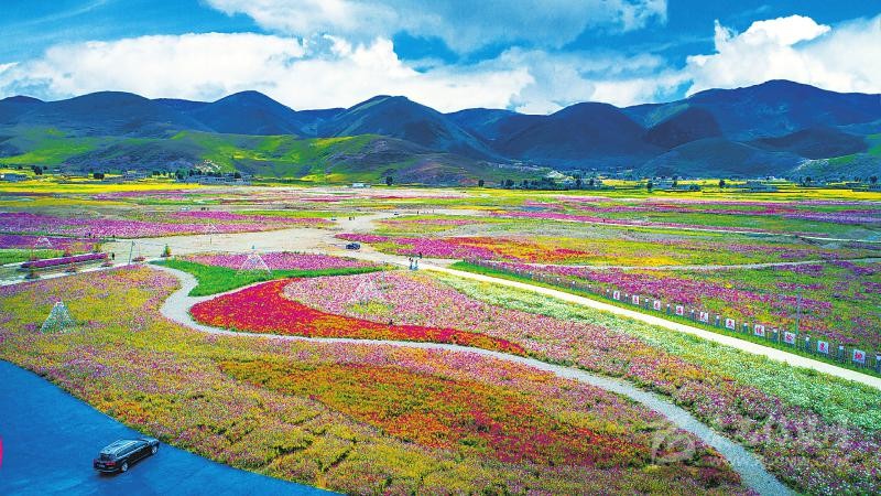 2018年9月,距甘孜州稻城縣城7公里的色拉鄉(xiāng)八美村山谷,1500余畝格?;ㄩ_成壯美“花?!薄6@里以前曾經(jīng)是沙化嚴重的低效益牧場。