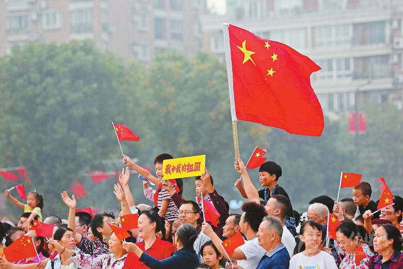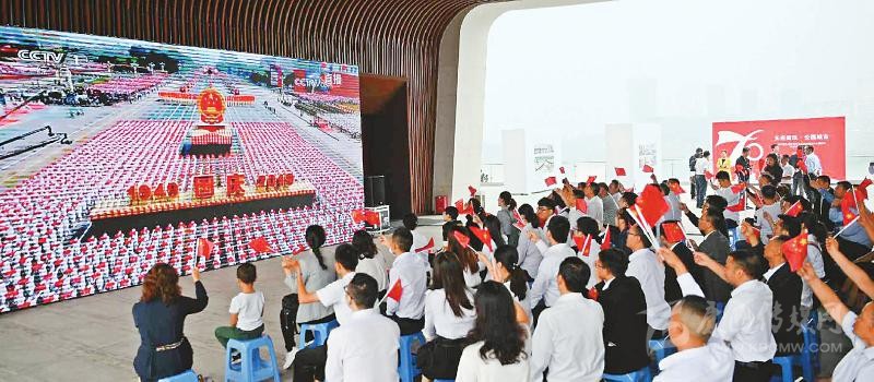 上午10時(shí),慶祝中華人民共和國(guó)成立70周年大會(huì)開(kāi)始。通過(guò)電視信號(hào),大會(huì)盛況傳遞至每個(gè)現(xiàn)場(chǎng)?!芭c祖國(guó)母親同在,祝福祖國(guó)繁榮昌盛?!边@是大家共同的心聲?!醣緢?bào)記者 林凌 何勤華 程文雯 徐中成 陳碧紅 文莎