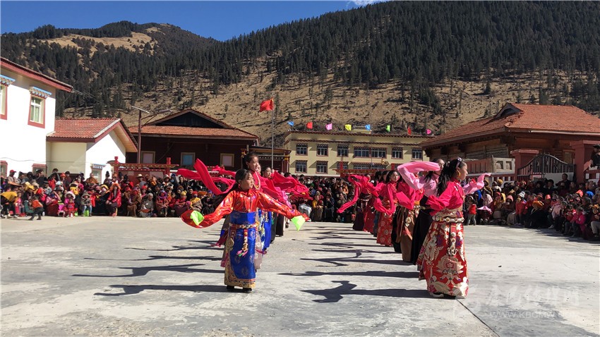 12月15日,雪后初晴。距離丹巴縣城37公里的高山深處,半扇門(mén)鄉(xiāng)臘月山三村,村民在嶄新的小廣場(chǎng)上跳起了鍋莊,幸福洋溢在每個(gè)人的臉上。
