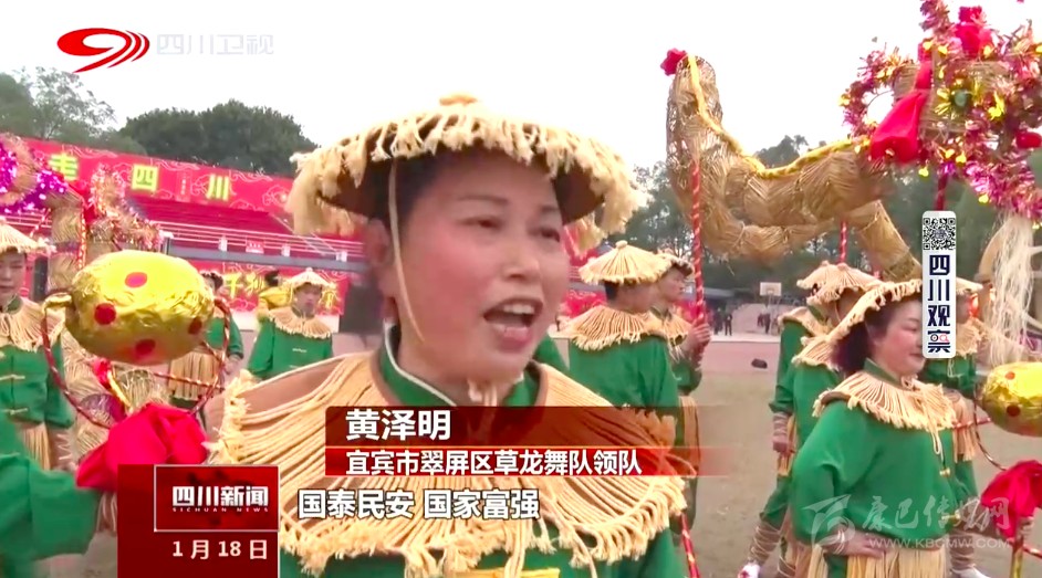 宜賓市翠屏區(qū)草龍舞隊(duì)領(lǐng)隊(duì) 黃澤明:“國泰民安,國家富強(qiáng),老百姓生活越來越好?!?/p>