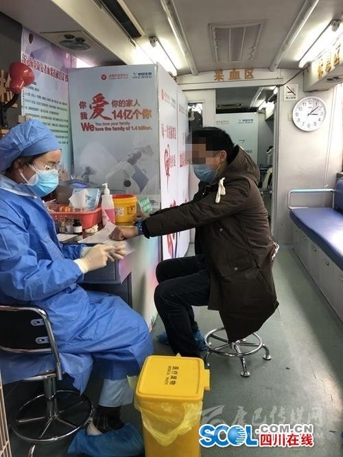 四川在線消息(記者 吳亞飛 文/圖)2月17日下午14點,兩名新冠肺炎康復者,在成都市血液中心血漿采集專車上完成血漿捐獻。這是成都市在全省首次采集新冠肺炎康復者血漿,將用于新冠肺炎重癥、危重癥患者治療。