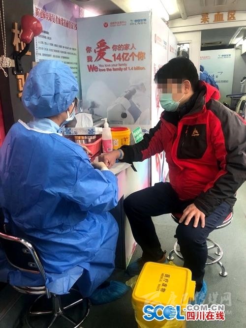 在捐贈現(xiàn)場,成都市血液中心在對其身體狀況進行評估后,采集200毫升血漿。