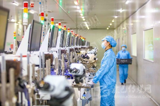 2020年2月17日,遂寧市經(jīng)開(kāi)區(qū)藍(lán)彩電子智能信息化車間,工人正在生產(chǎn)線開(kāi)足馬力加緊生產(chǎn)。該企業(yè)作為西南片區(qū)重要的電子信息產(chǎn)業(yè),其產(chǎn)品主要用于數(shù)碼產(chǎn)品、電腦、電視等領(lǐng)域。自復(fù)工后,一線員工回崗率70%以上,加班加點(diǎn)生產(chǎn)保障市場(chǎng)經(jīng)濟(jì)平穩(wěn)運(yùn)行。
