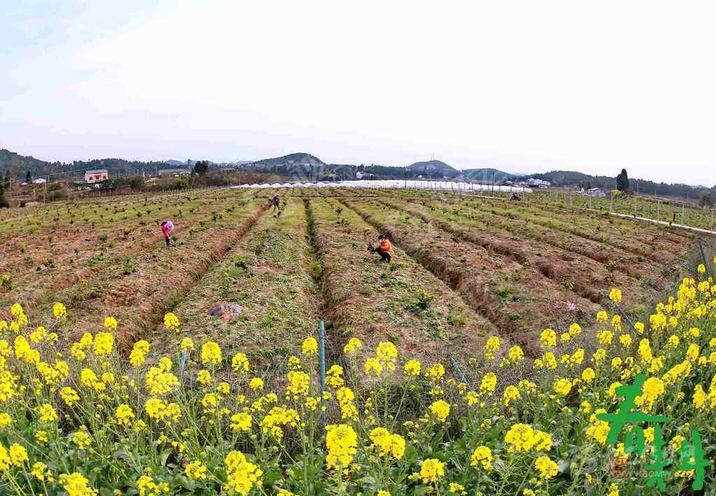 閬中市江南街道辦事處鐘山村,工人在給油菜噴灑農(nóng)藥。