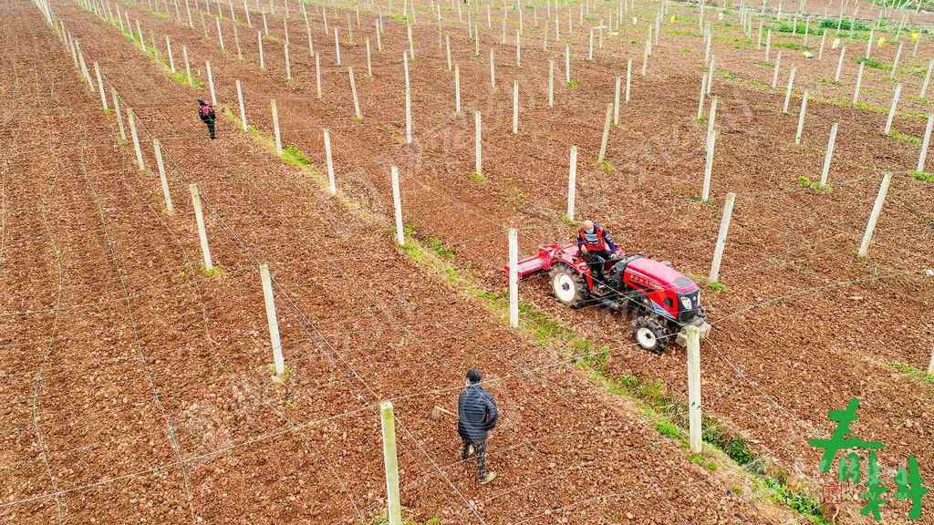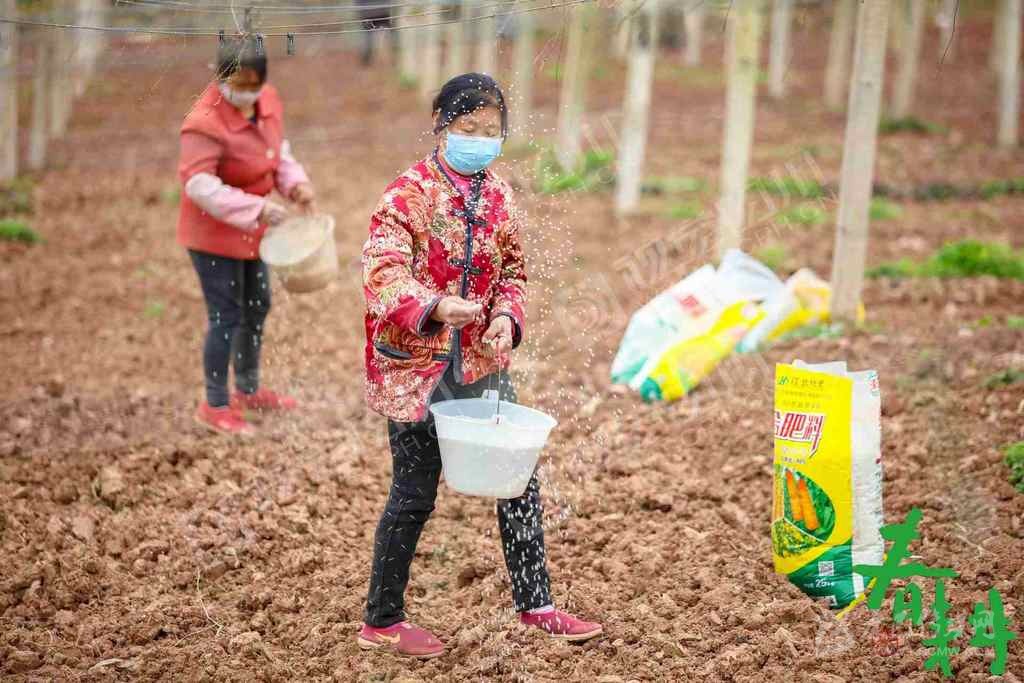巴中市恩陽(yáng)區(qū)上八廟鎮(zhèn)安居村的葡萄產(chǎn)業(yè)園里,產(chǎn)業(yè)員工佩戴口罩,分散在產(chǎn)業(yè)園里施肥。