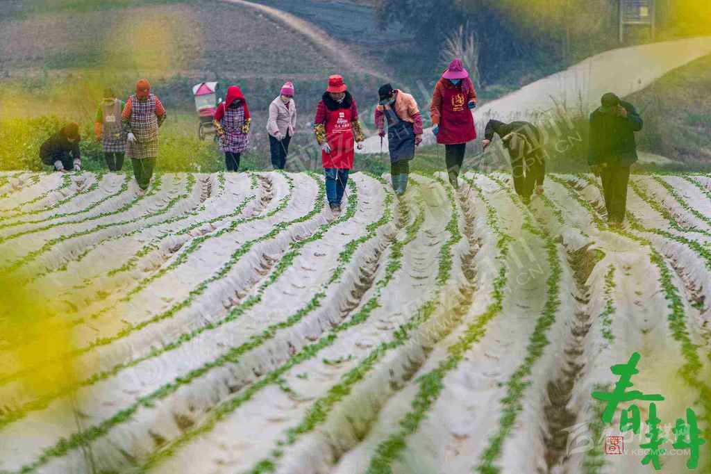 閬中市彭城鎮(zhèn)五谷臺(tái)村,村民在精心管護(hù)蔬菜,把菜苗從薄膜里“掏出來(lái)”。