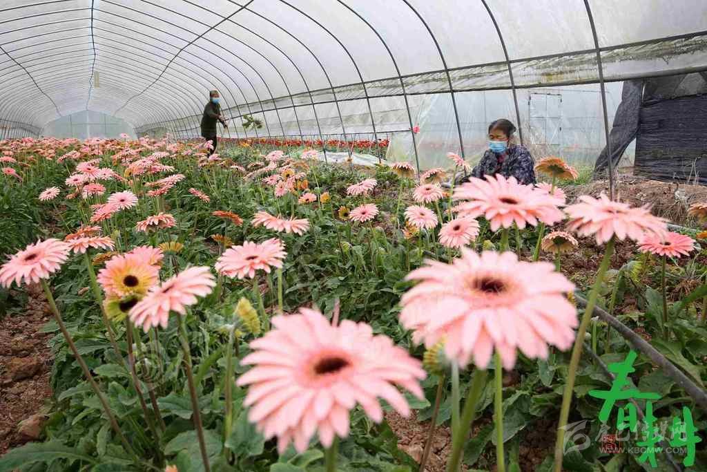 內(nèi)江市東興區(qū)田家鎮(zhèn),韓娟種植專(zhuān)業(yè)合作社的農(nóng)民正在大棚里管理花卉。