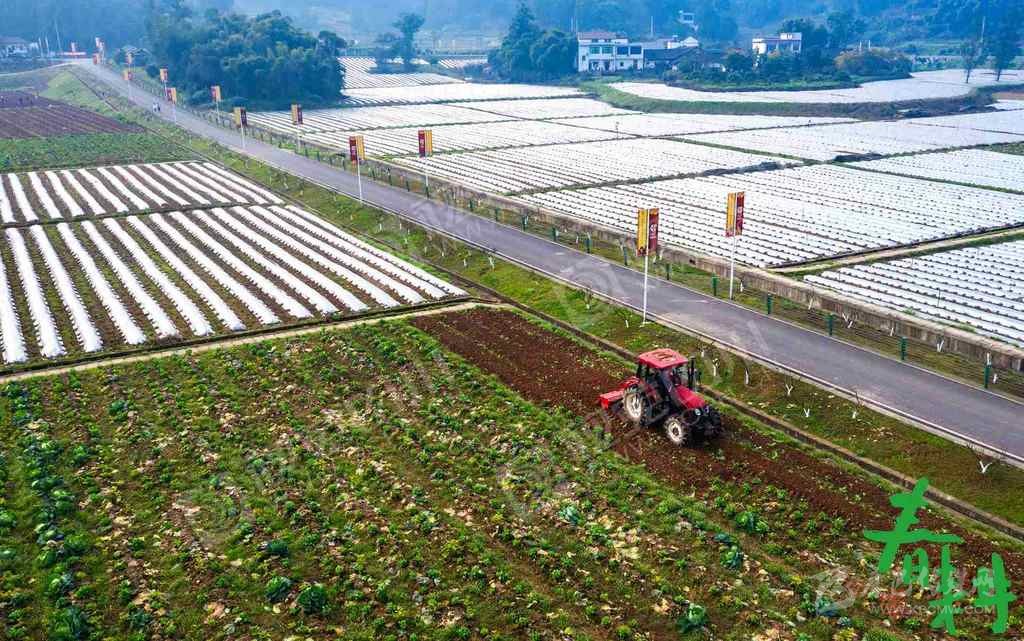 閬中市彭城鎮(zhèn)五谷臺(tái)村,機(jī)械正在菜地里作業(yè),開(kāi)溝起壟施底肥一氣呵成。