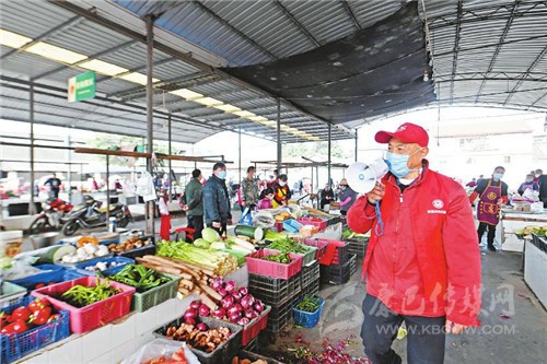 “喇叭哥”志愿服務(wù)很帶勁邱時(shí)春在農(nóng)貿(mào)市場(chǎng)用喇叭喊話(huà),提醒大家戴好口罩。