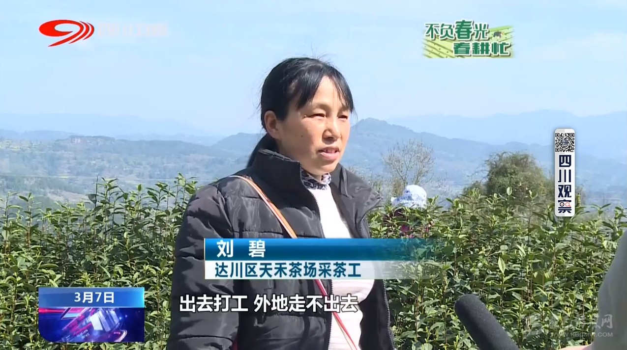 達(dá)川區(qū)天禾茶場(chǎng)采茶工劉碧:我們今年這個(gè)疫情期間出去打工外地走不出去,所以說我們聽了茶場(chǎng)招工,我們就到茶場(chǎng)找工作,掙點(diǎn)錢,賺點(diǎn)生活費(fèi)。