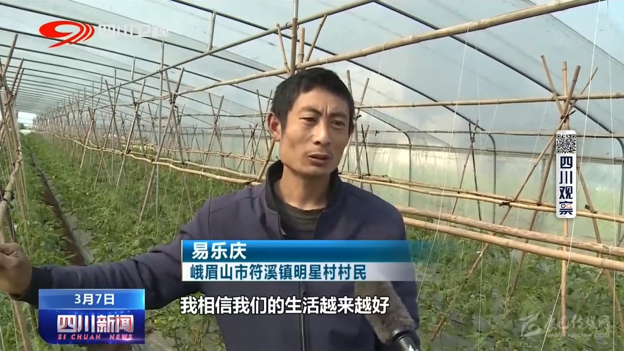 符溪鎮(zhèn)是峨眉山市的蔬菜生產(chǎn)基地,有大棚蔬菜種植面積近2萬畝。村民易樂慶和家人這幾天一直在蔬菜大棚里忙碌著。雖然今年受新冠肺炎疫情的影響,蔬菜的栽種時(shí)間比往年有所延遲,可看到已經(jīng)掛果的小番茄,對(duì)未來的生活他充滿了信心。
