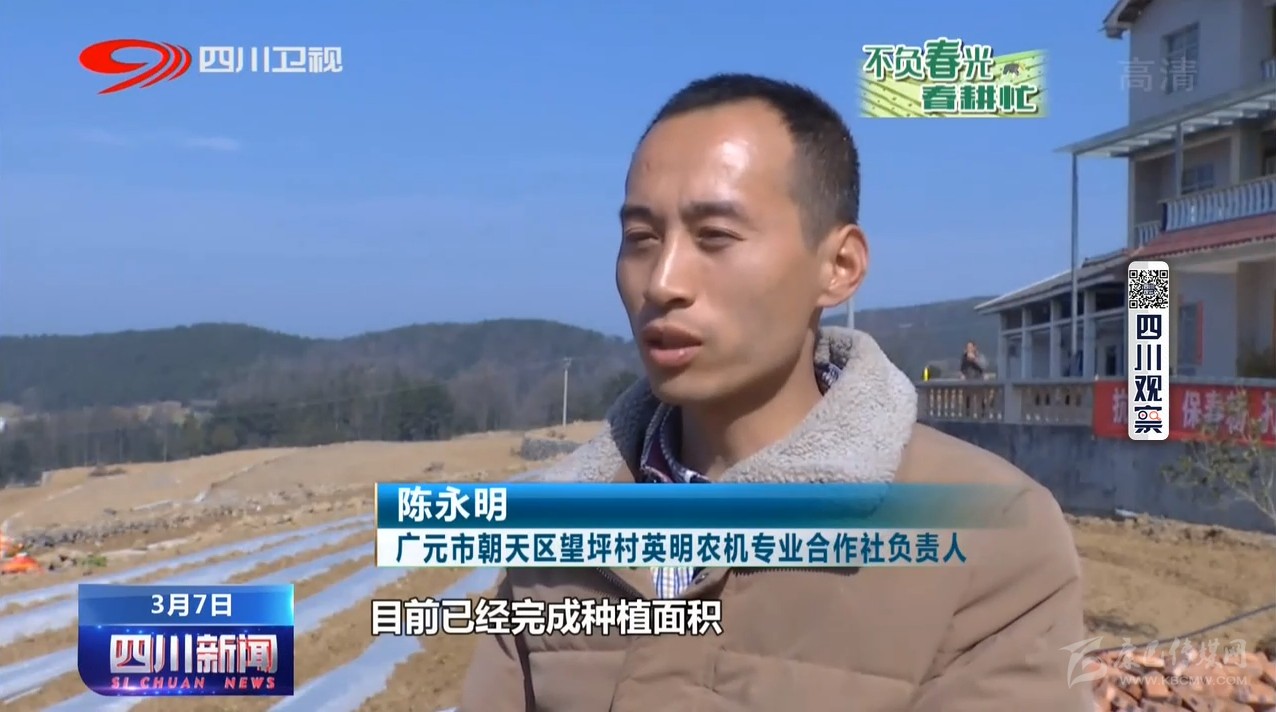 廣元市朝天區(qū)望坪村英明農(nóng)機(jī)專業(yè)合作社負(fù)責(zé)人陳永明:目前已經(jīng)完成種植面積有三四十畝,大量投入機(jī)器播種,300多畝地五六天就能完成。
