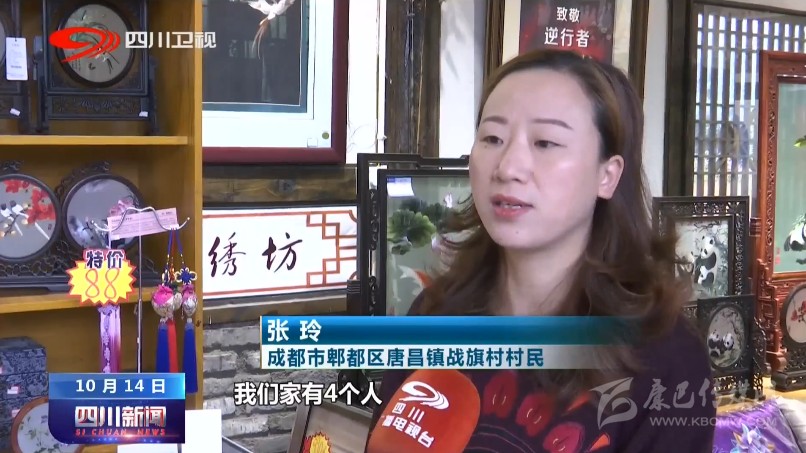 成都市郫都區(qū)唐昌鎮(zhèn)戰(zhàn)旗村村民張玲說:“村上根據(jù)我們土地入股的畝數(shù),我們家有4個(gè)人,每年能夠分到5000塊錢左右,年底還有集體經(jīng)濟(jì)分紅2000塊錢左右。我就在蜀繡坊上班,我老公在村上上班,我媽媽在家里面做民宿,這樣比以前種地時(shí)候收入高了很多。”