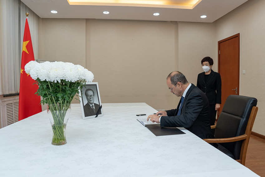 12月5日,烏茲別克斯坦總理阿里波夫在中國駐烏茲別克斯坦大使館吊唁江澤民同志。 高山 攝(新華社 發(fā))