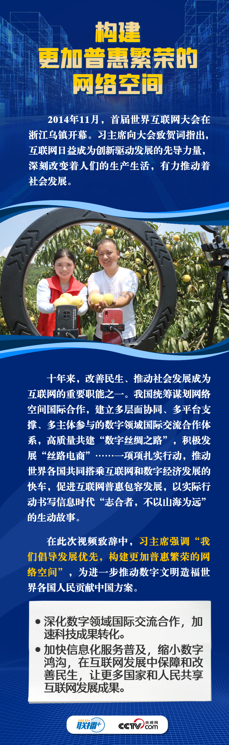 聯(lián)播+11月8日,習(xí)近平主席向2023年世界互聯(lián)網(wǎng)大會(huì)烏鎮(zhèn)峰會(huì)開(kāi)幕式發(fā)表視頻致辭。自2014年首屆世界互聯(lián)網(wǎng)大會(huì)舉辦以來(lái),習(xí)主席通過(guò)發(fā)表主旨演講、視頻致辭或者向大會(huì)發(fā)來(lái)賀信等不同形式關(guān)心大會(huì)的舉辦,始終倡導(dǎo)構(gòu)建網(wǎng)絡(luò)空間命運(yùn)共同體,得到國(guó)際社會(huì)廣泛認(rèn)同和積極響應(yīng)。