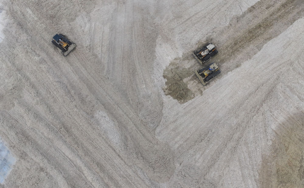 12月12日,在廣西湘桂華糖制糖集團(tuán)來賓紙業(yè)有限責(zé)任公司,工作人員在整理蔗渣(無人機(jī)照片)。