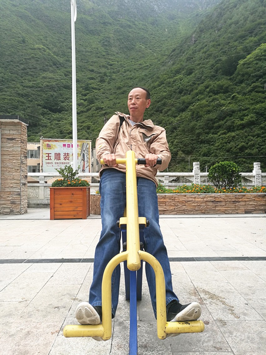 今年57歲的多吉,來自德格,前段時(shí)間做完體檢后,就一直住在康定。在這期間,他每天早上都會(huì)散步半小時(shí)到健身器材處鍛煉,當(dāng)記者問他對(duì)是否對(duì)全民健身有了解時(shí),他說:“全民健身就是要大家都運(yùn)動(dòng)起來,所有人都能擁有一個(gè)好身體?,F(xiàn)在很多人上班工作忙,下班應(yīng)酬、上網(wǎng)忙,嚴(yán)重缺乏鍛煉;像我一樣上了年齡的就更要鍛煉,這不僅是對(duì)自己的身體負(fù)責(zé),更是對(duì)兒女負(fù)責(zé)?!睋?jù)了解,多吉在老家德格,還有一個(gè)鍛煉基地——印經(jīng)院,每天在那里轉(zhuǎn)經(jīng)不僅讓他的身體得到鍛煉,更讓他的心靈得到沉淀。