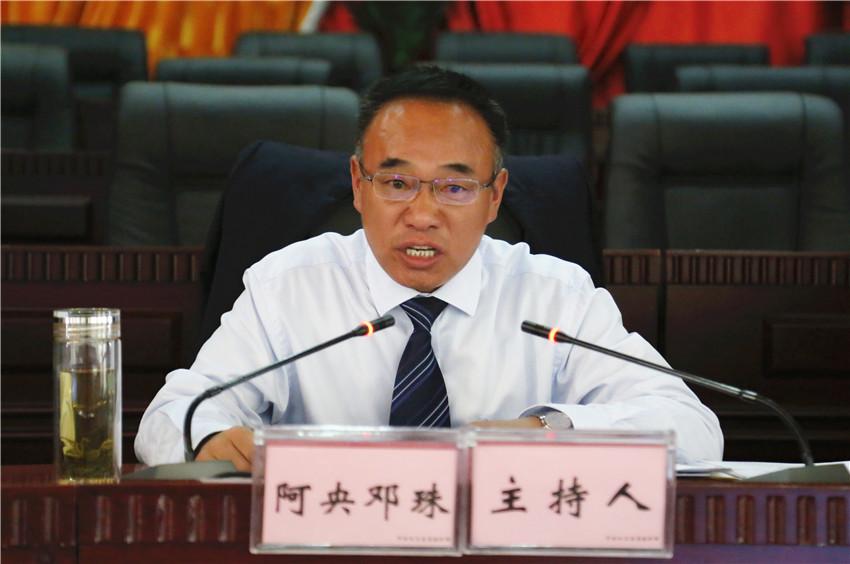 縣委副書記、縣長阿央鄧珠主持開班儀式。