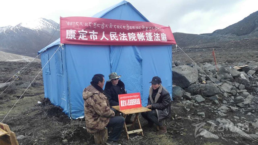 康定市人民法院把巡回法庭搬上山, 在一個(gè)簡(jiǎn)陋的帳篷外,法律服務(wù)站(點(diǎn))設(shè)在值勤點(diǎn),一手抓穩(wěn)定、一手抓審判?!皫づ穹ㄍァ钡姆ü僭诖迕窦议T口審案子,把嚴(yán)肅的法理融入知心話告訴當(dāng)事人,拉近與當(dāng)事人間的距離,更易于化解矛盾。農(nóng)牧民群眾在春播秋收季節(jié)、蟲草采挖季節(jié)和冬季牧場(chǎng)搬遷時(shí)往往忙于勞作,很難抽出時(shí)間到法院參加訴訟,因此影響了他們通過司法途徑維護(hù)自己的合法權(quán)益。采用“帳篷法庭”、巡回審理的方式就地辦案,及時(shí)調(diào)處矛盾糾紛,為群眾提供了便捷的司法服務(wù)。