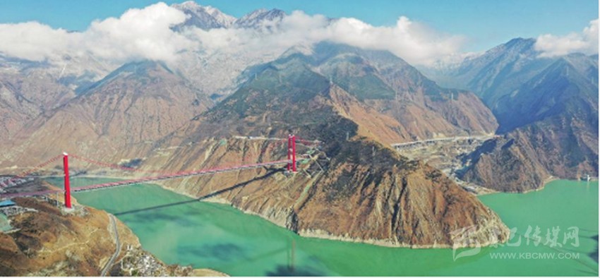 沿河逆流而上,一座氣勢磅礴、色彩壯麗同時凝結(jié)無數(shù)科學(xué)技術(shù)成果的現(xiàn)代化大橋“飛虹跨塹”,這是雅康高速瀘定大渡河大橋。