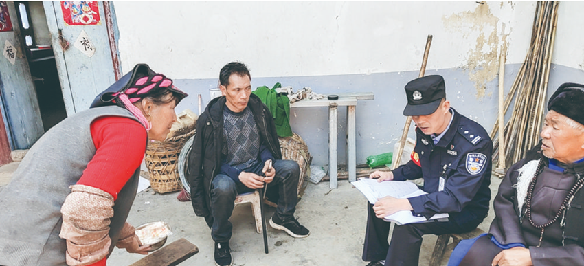 民警張權(quán)中走訪當(dāng)?shù)厝罕娏私馇闆r