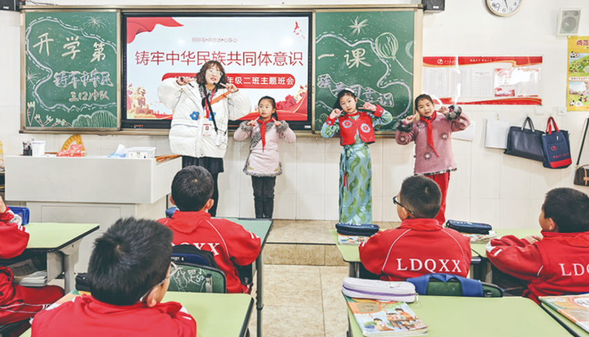 圖為學(xué)校開展民族團(tuán)結(jié)進(jìn)步教育主題班會(huì)。