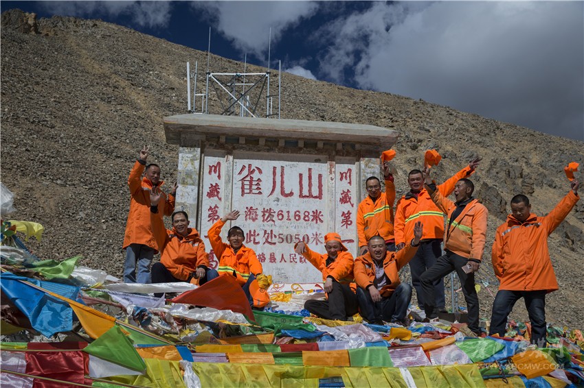 該做的活路做完了,9個人再一次來到山埡口那個立有標(biāo)牌的地方,為他們每一個人拍下了一張紀(jì)念照,他們說雀兒山將不會再有道班房了,這張照片就是他們永遠(yuǎn)的紀(jì)念。說完他們從懷中掏出才從山下買來的龍達(dá),這是藏族人民驅(qū)災(zāi)祈福的信物,迎著呼呼的大風(fēng),揚(yáng)手拋上了藍(lán)天。不知是誰發(fā)出了哭聲,于是9個人都哭了,9個漢子的哭聲在5050米的高度揮撒開來是何等的豪邁!